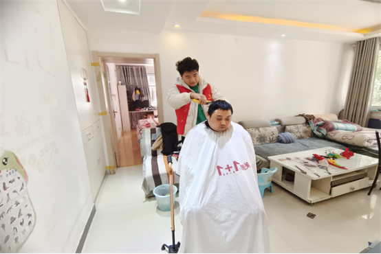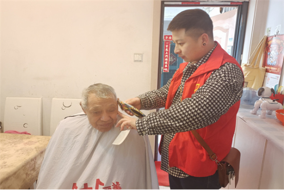 活动中,志愿者早早地来到社区准备好理发的工具,等待居民的到来。一把剪刀、一块围布、一把梳子,志愿者一边与老人们亲切交谈,询问他们心中的理想发型,一边和老人们聊着家常,很快一个一个清爽的发型就呈现在老人的眼前。老人们看着自己的新发型,心情也跟着美丽起来。对志愿者们连声夸赞,并表示感谢。对于行动不便的特扶家庭老人、残疾人,理发队志愿者还提供上门服务,为他们送去一份温暖。社区残疾老人孙师傅表示:“居委会考虑我们年纪大,出门理发不方便,免费上门为我们理发,真是特别地好,太感谢了!”