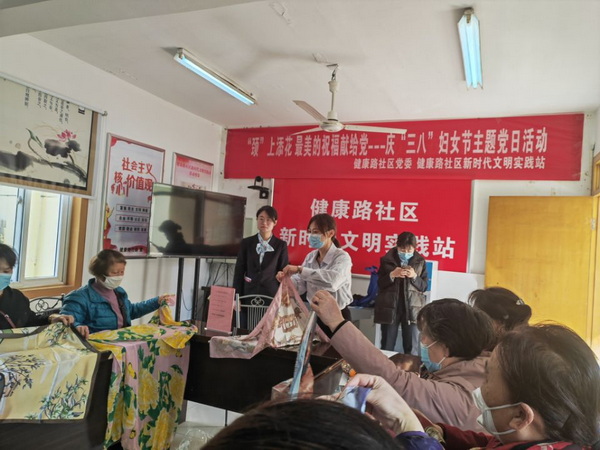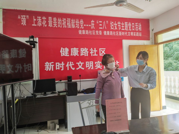 阳春三月,春意盎然,为丰富辖区居民的文化生活,表达支部退休女党员“巾帼芬芳显芳华 桑榆红心永向党”的美好心意。近日,范罗山街道健康路社区党委在社区活动室开展"颈"上添花 最美的祝福献给党---庆“三八”妇女节主题党日活动。